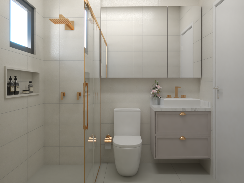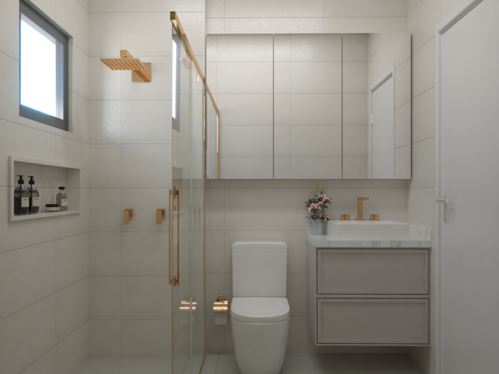 02 Banheiros, 02 quartos comuns e 1 quarto com suíte